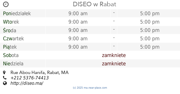 większa mapa i wskazówkiLatitude: 33.974601, Longitude: -6.829431